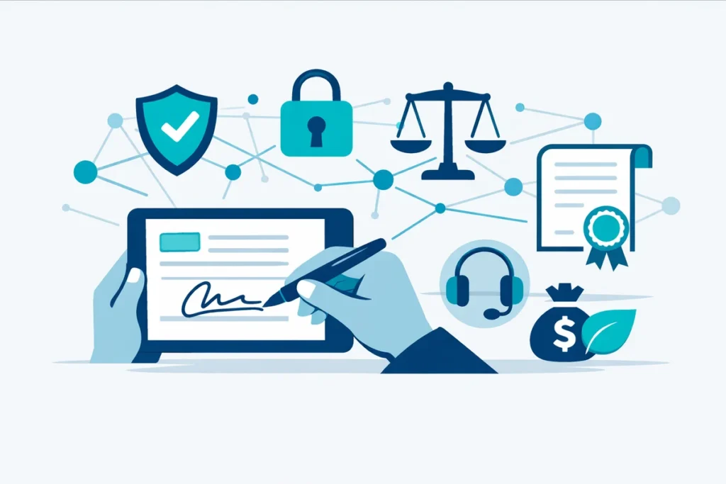 Moderne E-Signatur-Lösungen sind vollständig browserbasiert – es ist keine spezielle Software oder Hardware mehr erforderlich. Die Zertifikate werden cloudbasiert beim Vertrauensdiensteanbieter gespeichert (Fernsignatur). Für Unternehmen mit hohem Signaturvolumen bieten die meisten Anbieter API-Integrationen, um Signaturworkflows in bestehende Systeme (DMS, ERP, HR-Software) einzubinden.